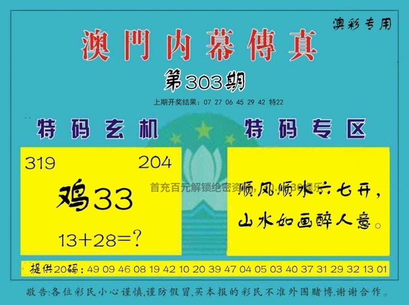 | 307期 | 绿波+蓝波 | 發00中 |