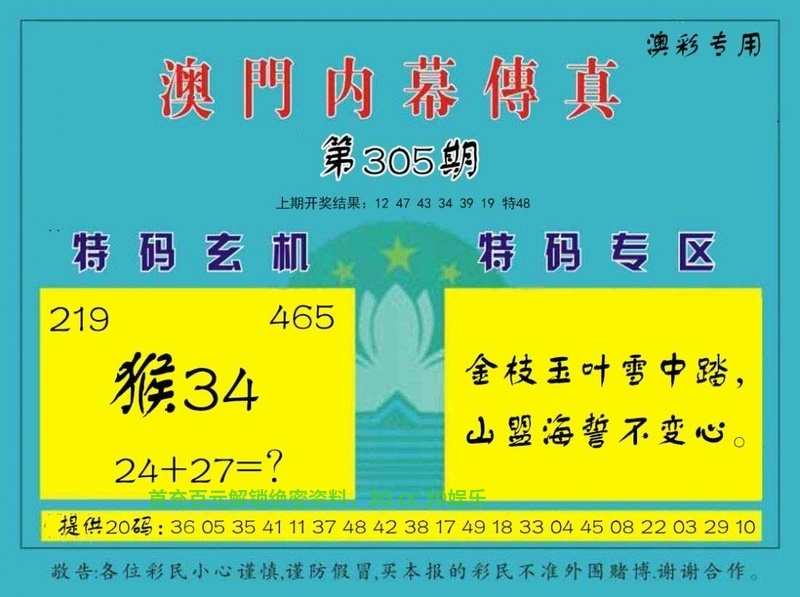 | 307期:一码 | 05 | 發00中 |